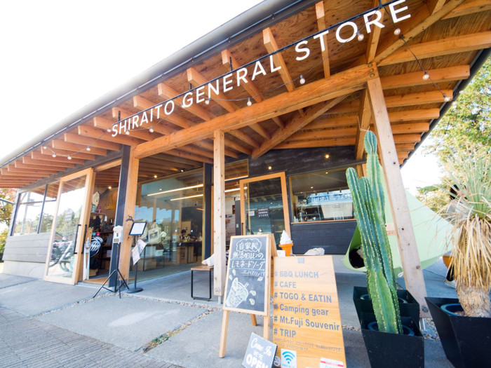 滝のすぐ近くには、レストランやカフェ、お土産物屋さんが集まった「富士山・白糸ノ滝テラス」も♪おしゃれなランチプレートや富士宮やきそばなどのご当地グルメのほか、コーヒーや朝霧高原牧場の牛乳を使ったソフトクリームもいただけますよ。富士山の自然に囲まれた気持ちのいいカフェタイムを過ごしましょう。珍しい天然石のアクセサリー屋さんも見どころです。