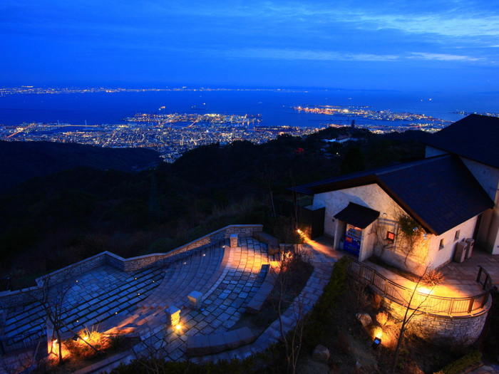 滞在中にぜひ訪れたいのが、歩いてすぐの「六甲ガーデンテラス」。カフェやレストラン、ショップ、ヒノキを緻密に組み合わせたアートのような展望台があり、ライトアップイベントなども開催されています。夜景はもちろん、「六甲枝垂れ」と名付けられたドーム越しの夜空も綺麗で、忘れられない思い出になります。