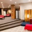 フロントの奥にあるエレベーターで宿泊エリアに行くのはまずフロントを通ってからです。